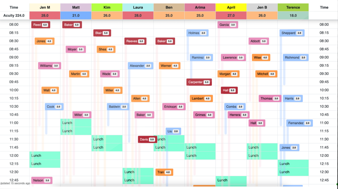 In order to achieve optimal nurse load balancing, iAssign™ performs intelligent patient assignments to treatment room nurses. Our sophisticated, proprietary algorithms take into consideration multitude of variables to objectively distribute patients across nursing staff minimizing nurse burnout and resulting in best patient experience.